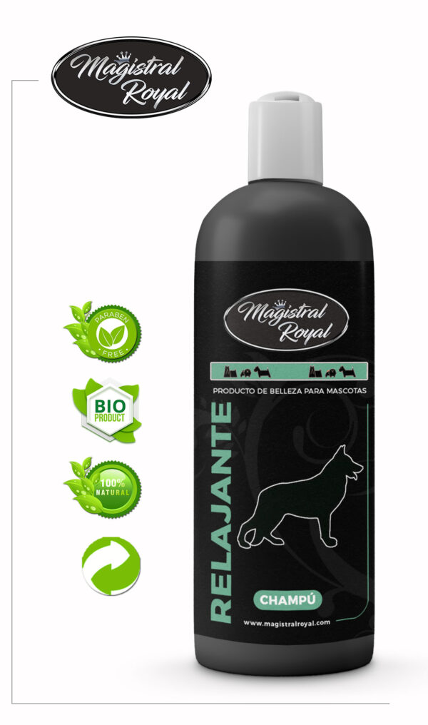 Champú efecto relajante de la piel, refresca, relaja y elimina radicalmente los picores y las molestias que provocan en nuestras mascotas las pulgas y garrapatas, actuando instantáneamente en la desaparición de los parásitos. No agrede ni reseca la piel del perro, con su fórmula basada en extractos naturales de plantas y aceites esenciales se consigue que la piel de tu mascota recupere su equilibrio natural, quedando limpia y fresca.