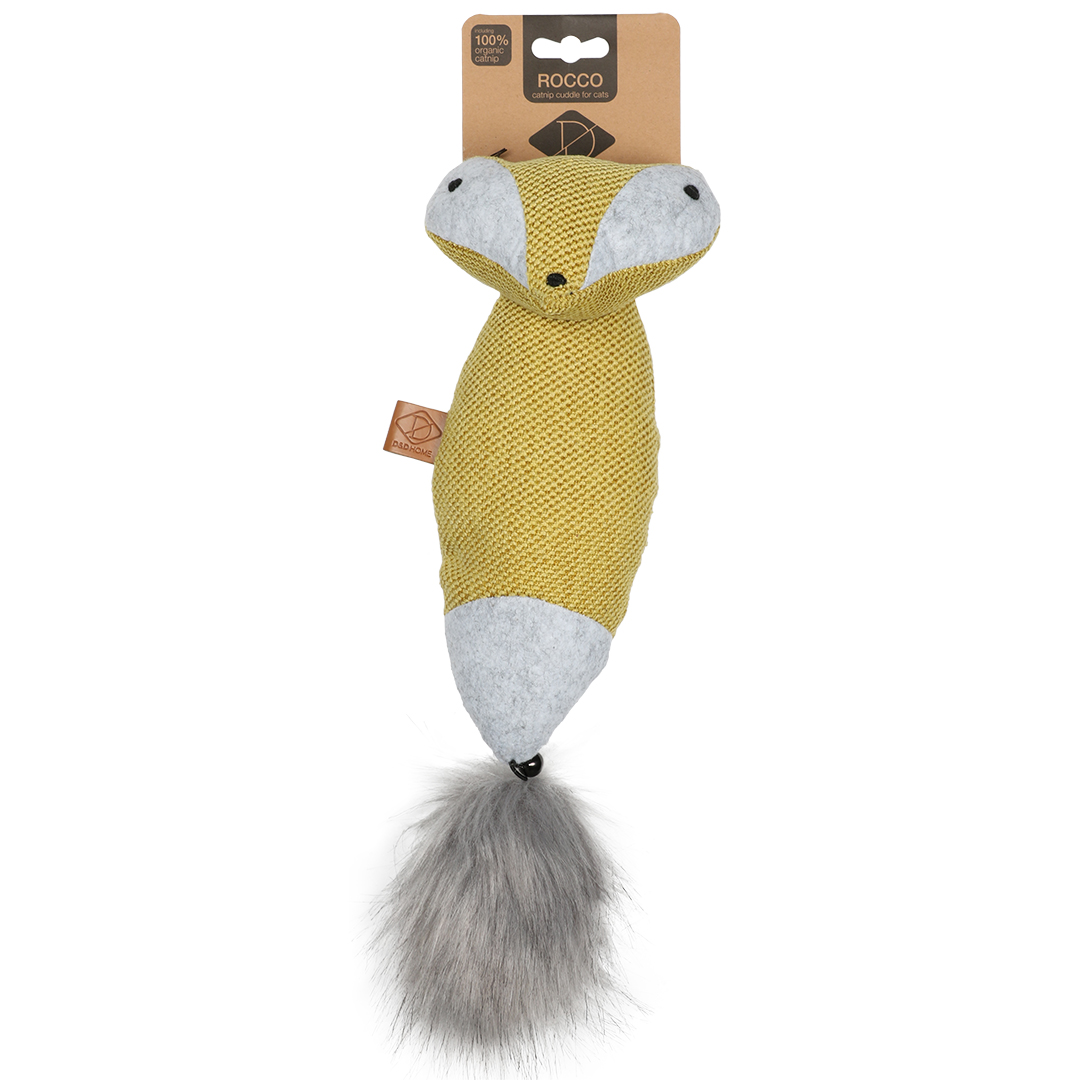 Con este gran cojín para patadas Rocco de D&D HOME, tu gato puede jugar, patear y abrazar a su antojo. Este fantástico juguete está hecho de suave tela de chenilla y tiene una cola esponjosa con campana como un factor de diversión adicional. El cojín para patear también tiene un bolsillo en el que puedes poner hierba gatera. La hierba gatera provoca una reacción en los gatos que los hace especialmente ansiosos por jugar. Los cojines para patear se sienten muy naturales para los gatos, porque les permiten imitar cómo tratan con presas más grandes. Sostienen el cojín con fuerza con sus patas delanteras y luego muerden y patean con sus poderosas patas traseras. Los cojines para patear también son una presa ideal que puedes darle a tu gato después de un momento de juego interactivo con una caña de jugar. Un verdadero imprescindible para todos los gatos.